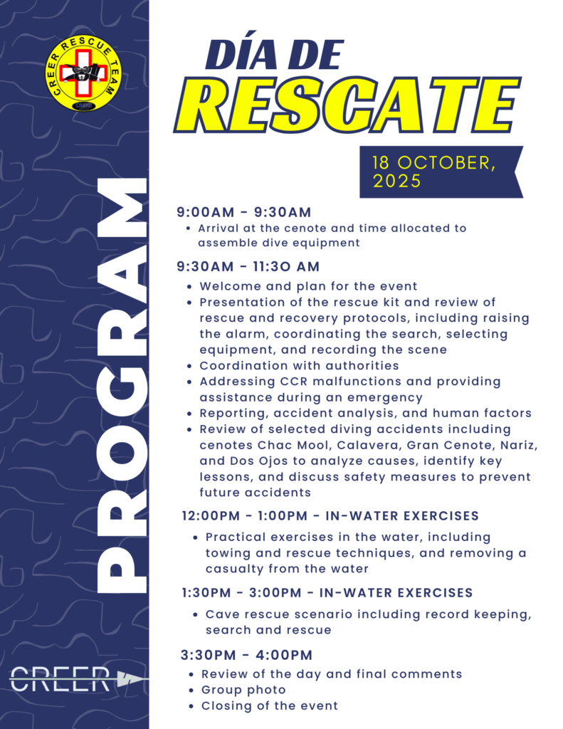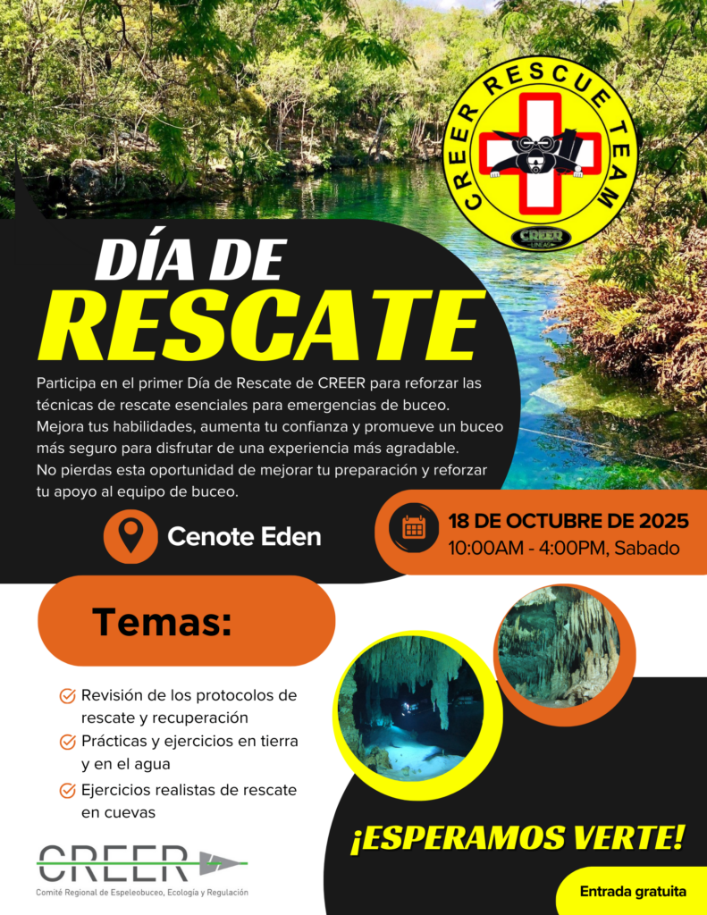 Rescue Day was held on October 18, 2025, at Cenote Eden, bringing together members of CREER (Comité Regional de Espeleobuceo, Ecología y Regulación) for a full day dedicated to hands-on training and collaboration.